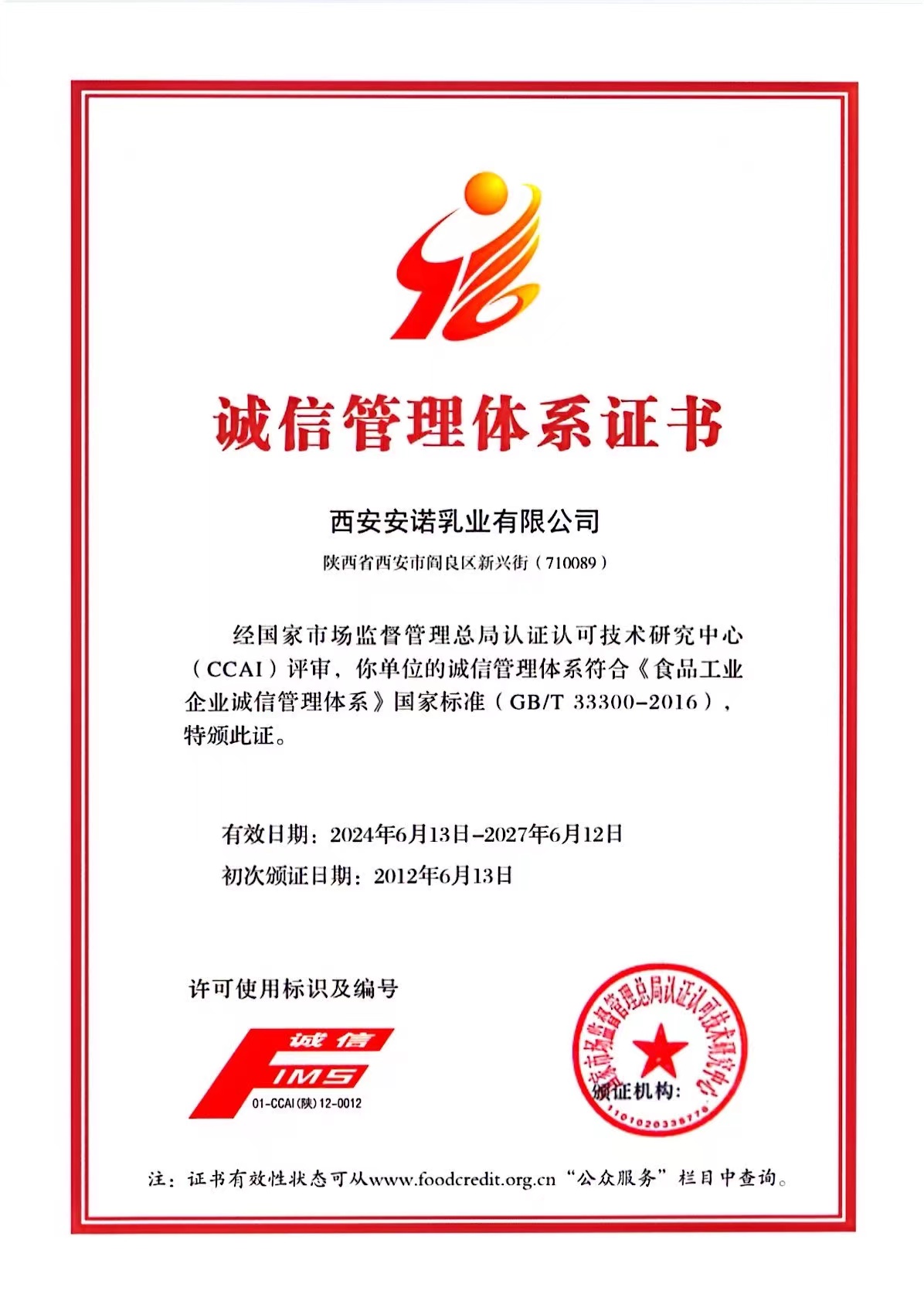 西安安諾乳業有限公司始建于1973年,迄今已有五十多年的發展歷史,安諾對于產品質量有嚴控體系網,確保每一批鮮奶、每一批原輔料、每一個過程、每一款產品,均按標準規范持之以恒,確保過程嚴謹有序,保證產品質量。